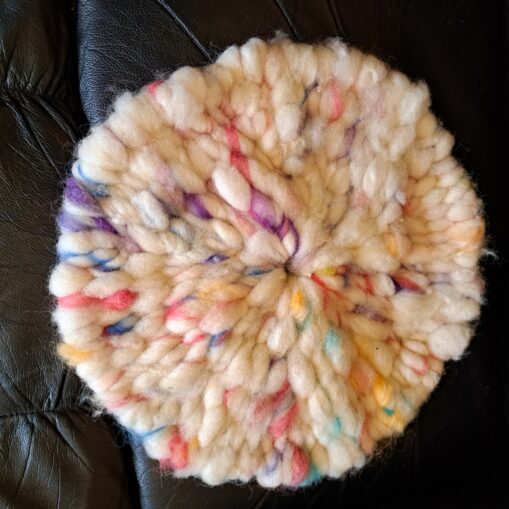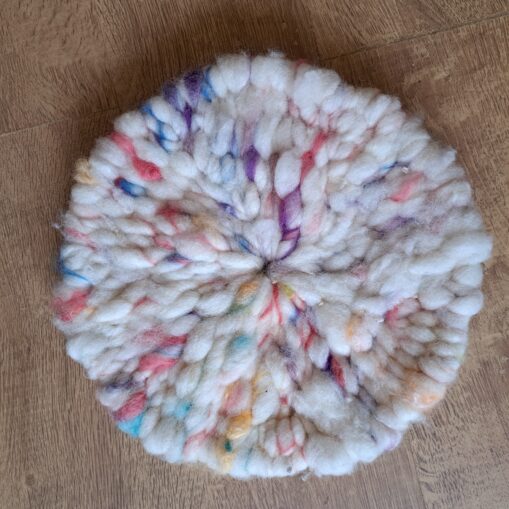 Seat / stool pad, Pet mat – lush Ryeland sheep fleece with a splash of colour